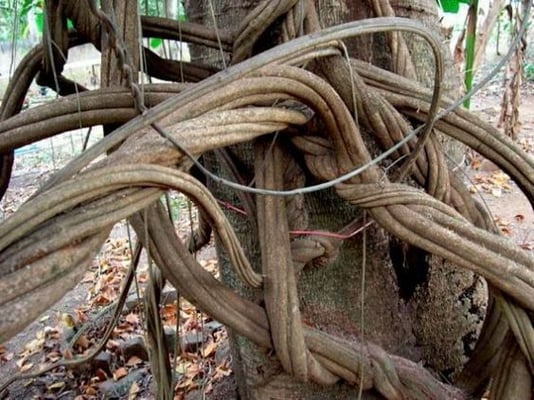 Die Liane Banisteriopsis caapi wird auch Ayahuasca genannt und bedeutet bei den Indigenen Völkern „Ranke der Seelen“ oder „Liane der Geister“. Sie ist die energetisch höchst entwickelte Pflanze im Regenwald und die Basis für den psychoaktiven "Schamanen-Tee". Meistens werden noch andere Zutaten beigemischt, wie die Blätter der DMT haltigen Chacruna (Psychotria viridis) oder der Mimose (Mimosa pudica). Jeder Indigene Stamm hat ihr eigenes Rezept. Yagé ermöglicht dem Molekül DMT in den Blutkreislauf zu gelangen, ohne dass der Magen beschädigt wird.